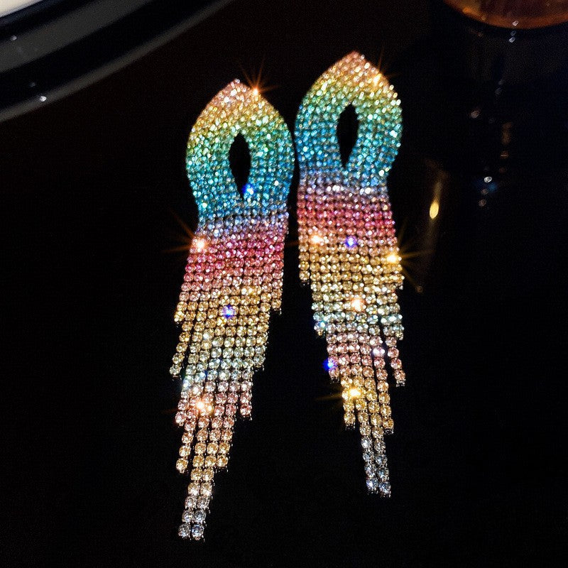 Color Diamond Love Tassel Earrings
