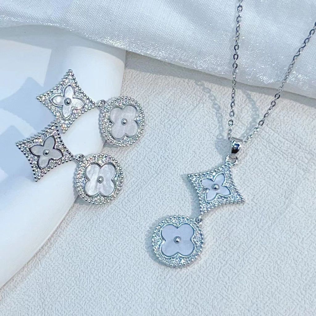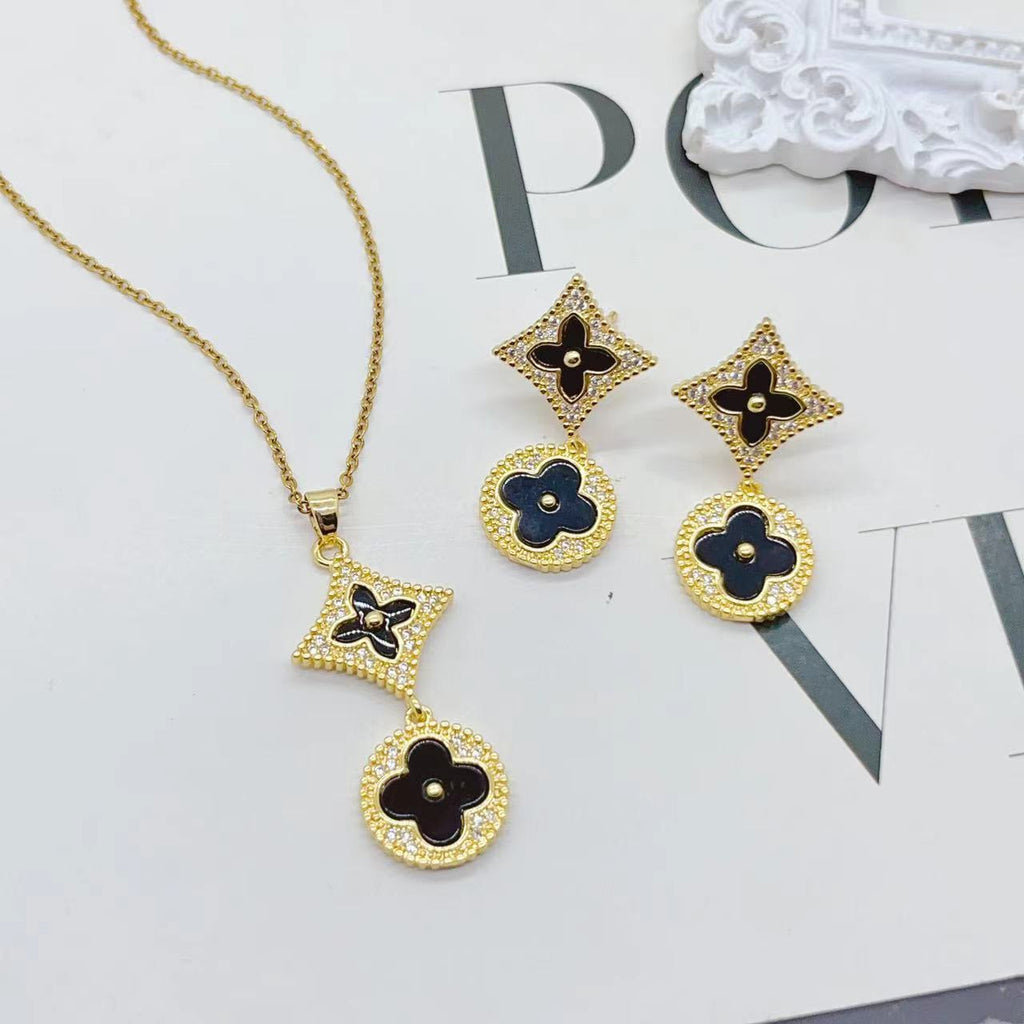 Colored Four Leaf Clover Earrings And Chain Set