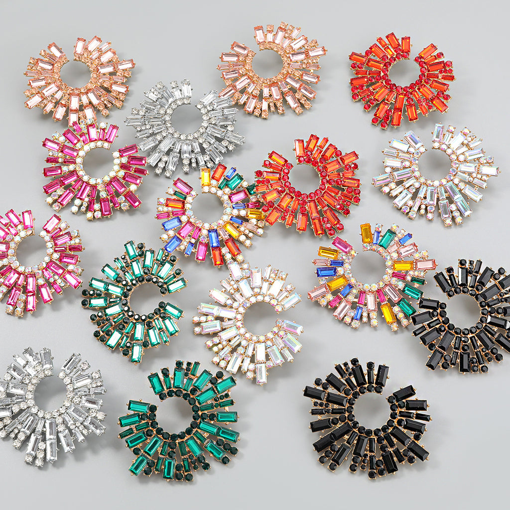Flashy Sunflower Rhinestone Earrings