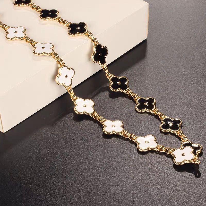Four Leaf Clover Black and White Double Sided Chain Belt