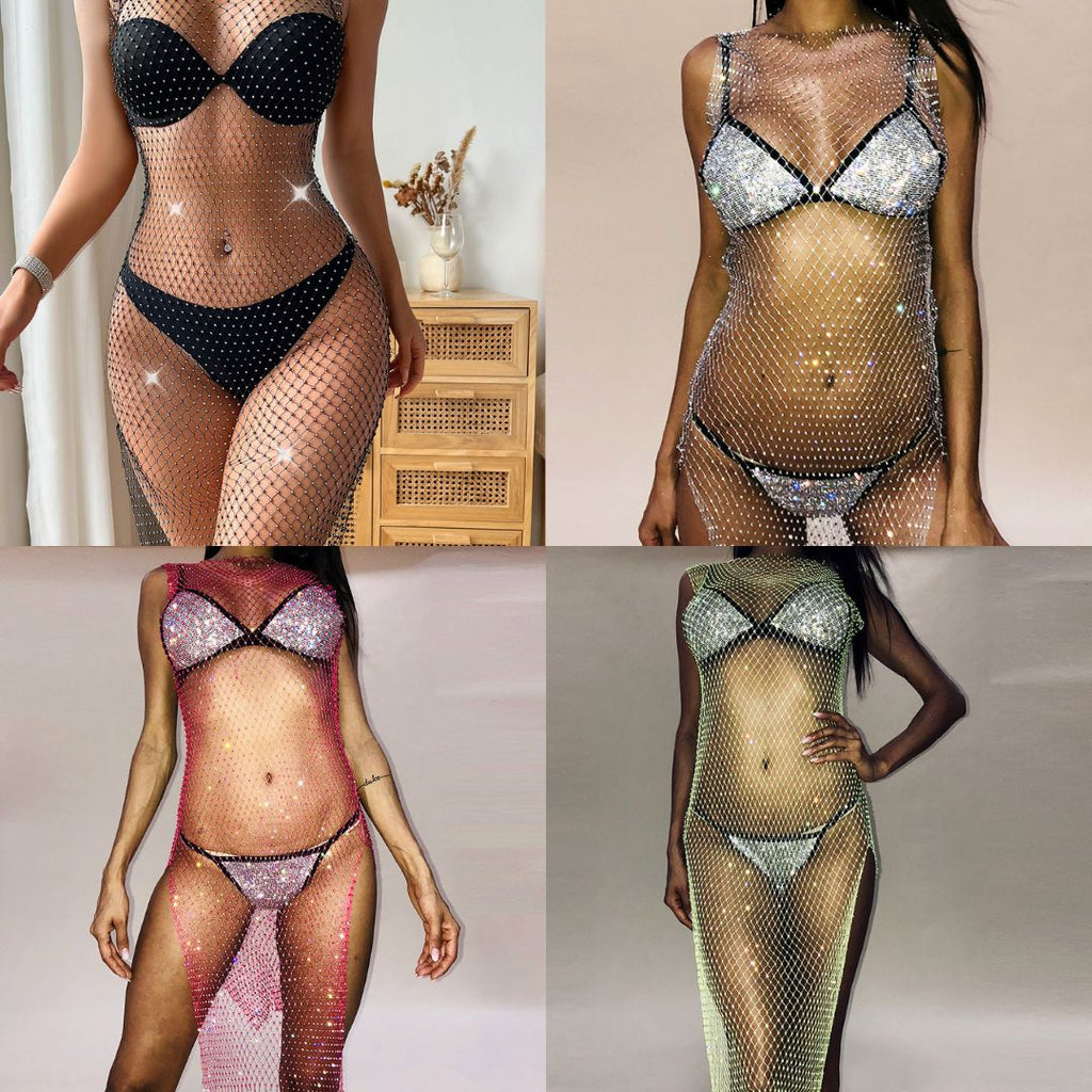 Rhinestone Fishnet Long Dress 946
