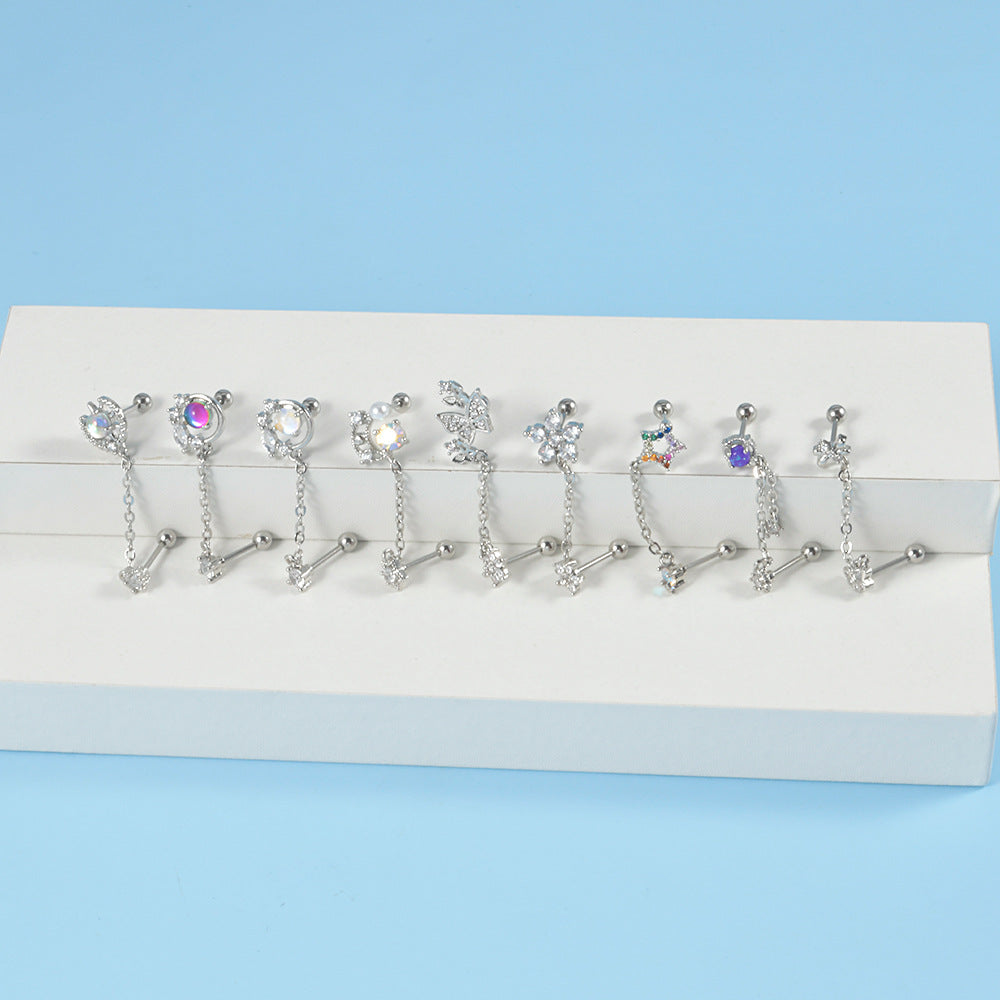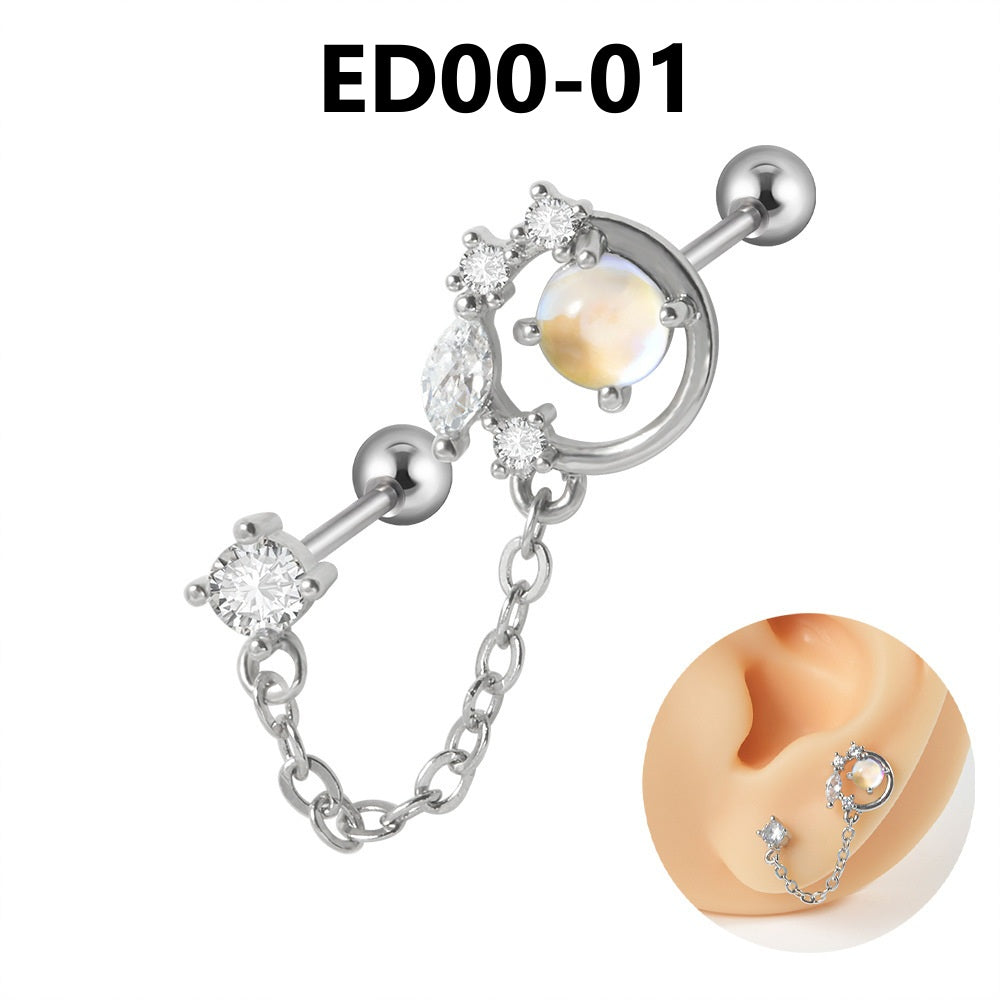 Stainless Steel Zircon Chain Earring