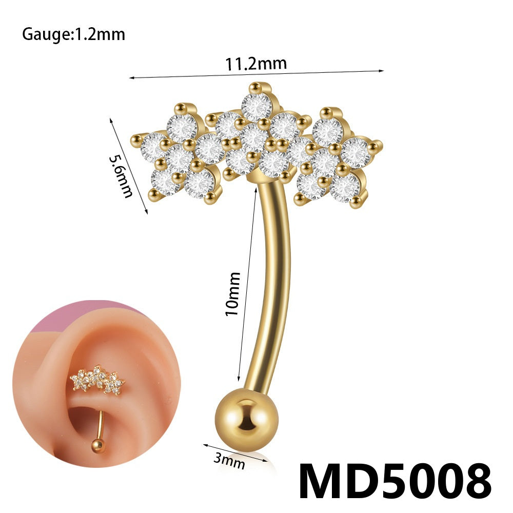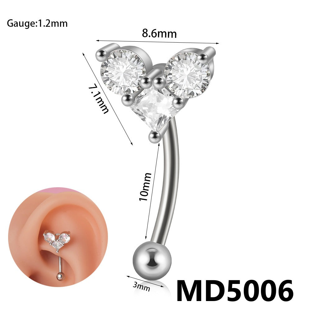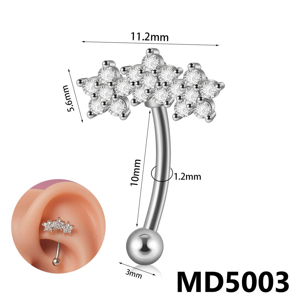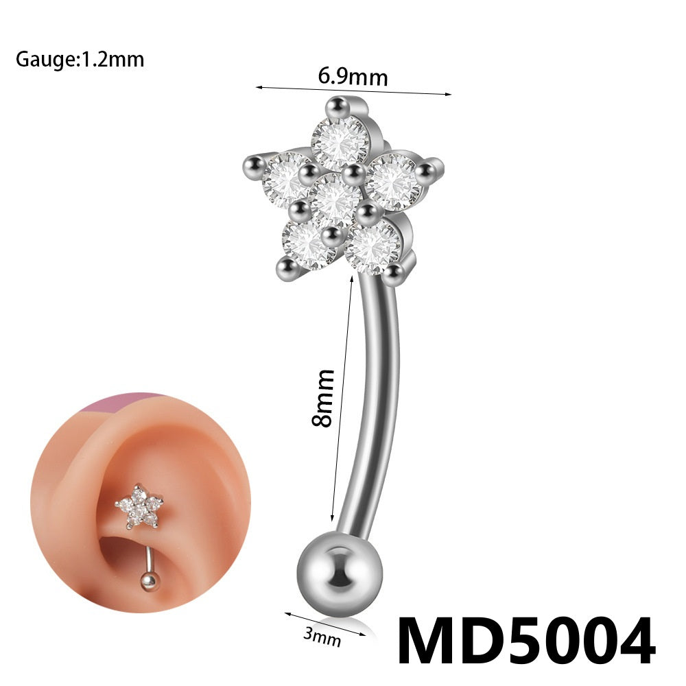 Stainless Steel Zircon Curved Rod Piercing