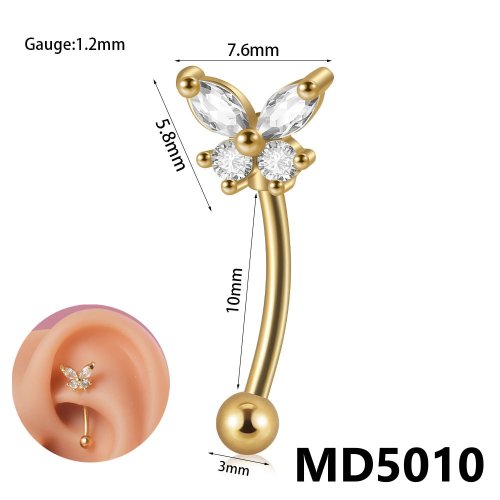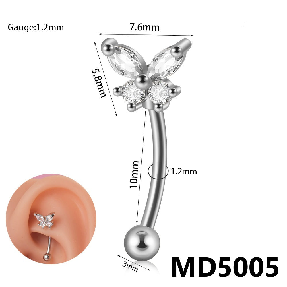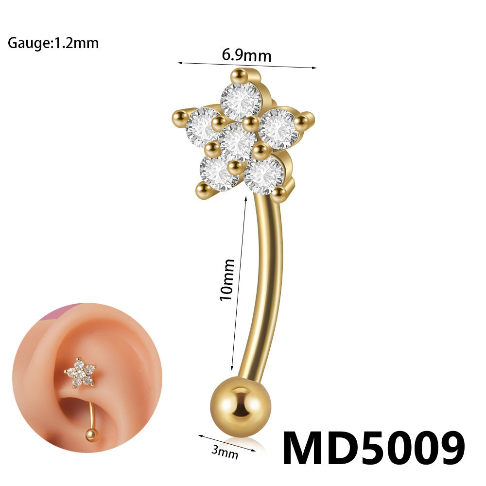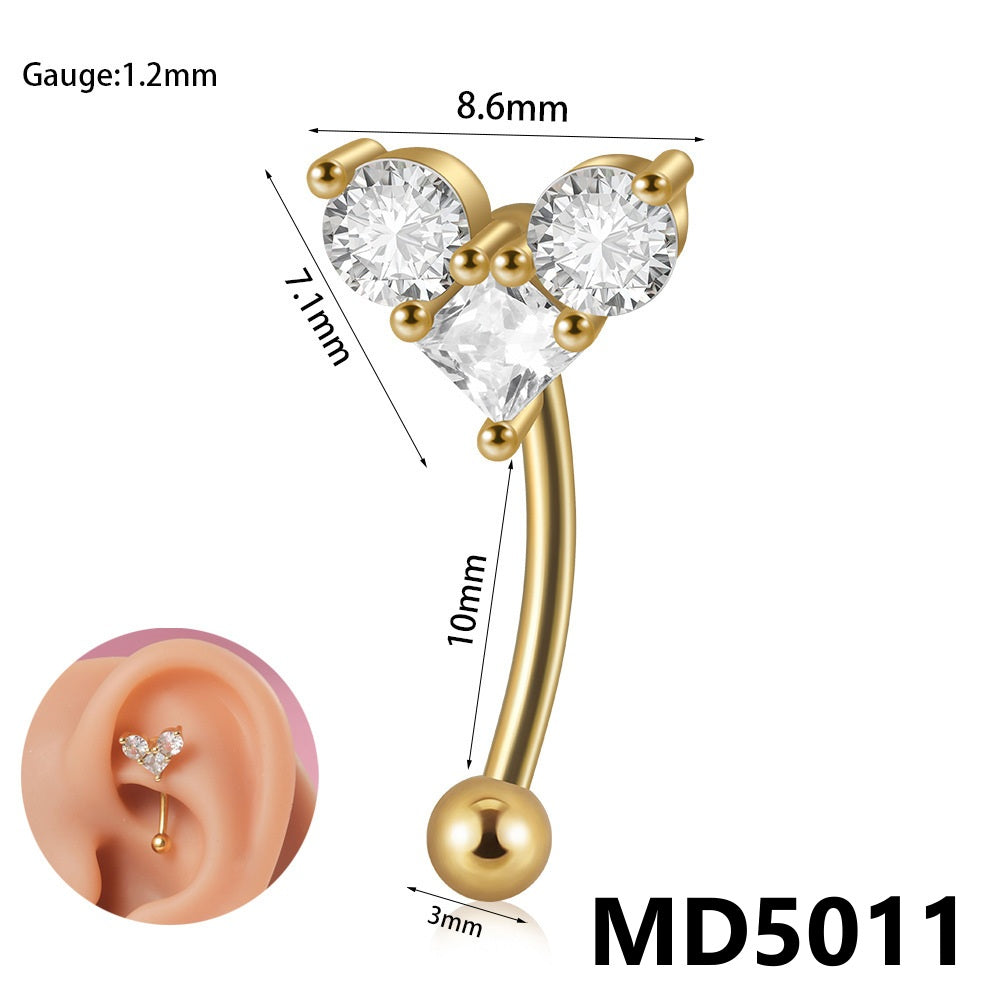 Stainless Steel Zircon Curved Rod Piercing